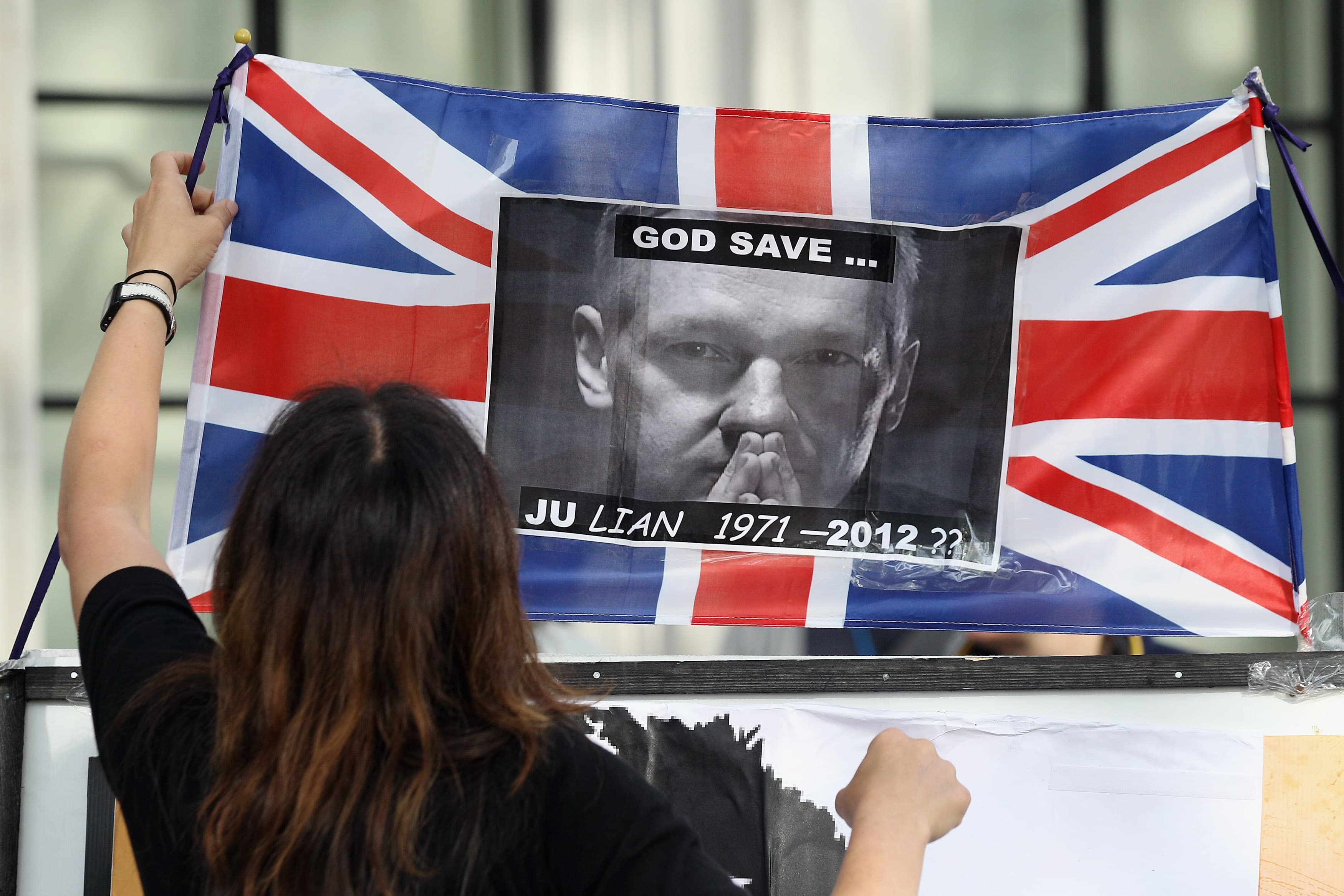 Protesters pledge support to Assange outside British Embassy in Ecuador
