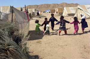 Children play in the newly established Sosmaqala Internally Displaced Persons (IDP) Camp in northern Afghanistan. The camp is comprised of recently returned Afghans following many years as refugees in neighbouring Iran.