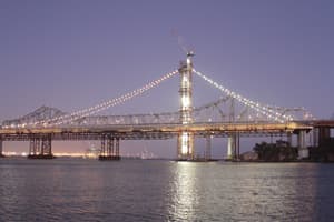 "We can sit here in this little park in Emeryville and look at two of the most magnificent bridges in the world," said William Ibbs, professor of construction management at the University of California, Berkeley. He's talking about the Golden Gate Bridge and the new eastern span of the Bay Bridge. It's under construction and set to open in 2013.