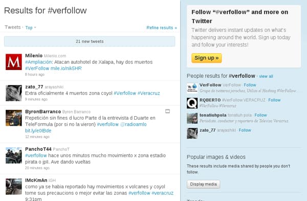 Hours after legislators passed the “anti-rumor” law, gunmen dumped 35 bodies of murder victims near an underpass in a commercial district of Veracruz during rush hour traffic. The news, along with photographic evidence, was first reported on Twitter by local residents using the #Verfollow hashtag.