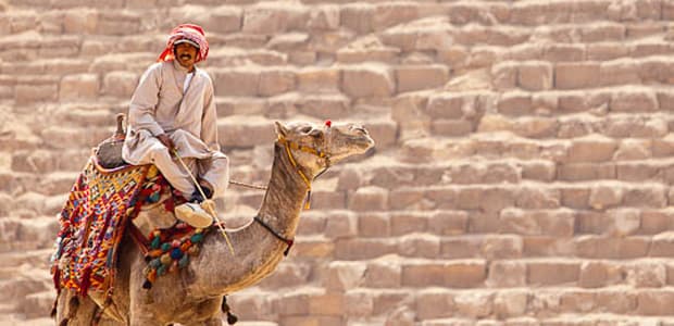 Tourist camel in front of Giza pyramid. (Photo: Jake Warga)