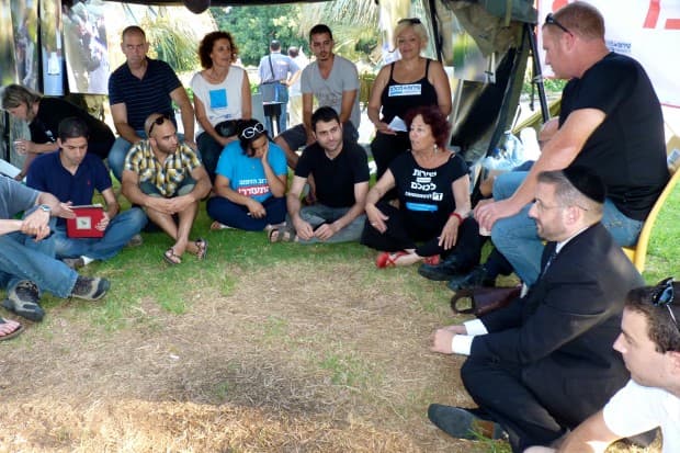 Lipman spoke with me at a small demonstration in Tel Aviv, where a group of young army veterans in t-shirts and jeans were demanding that the Ultra-Orthodox either join the army or do some kind of national service.