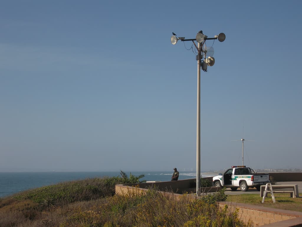 A U.S. Border Patrol Agent watches over the border along the beach near San Diego. The down economy and tighter enforcement have lowered net migration from Mexico to practically zero. (Photo by Flickr user Jamie Lantzy, cc-by-sa.)
