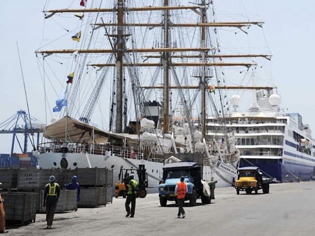 The Argentine ship Libertad tied up at the dock in Ghana (Photo: Reuters)