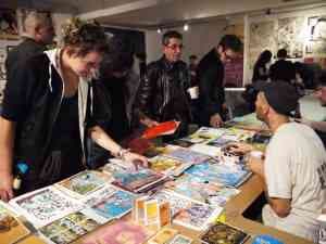 Visitors peruse comics at the Cultures Maison Fair and Expo in Brussels. (Photo by Don Duncan.)