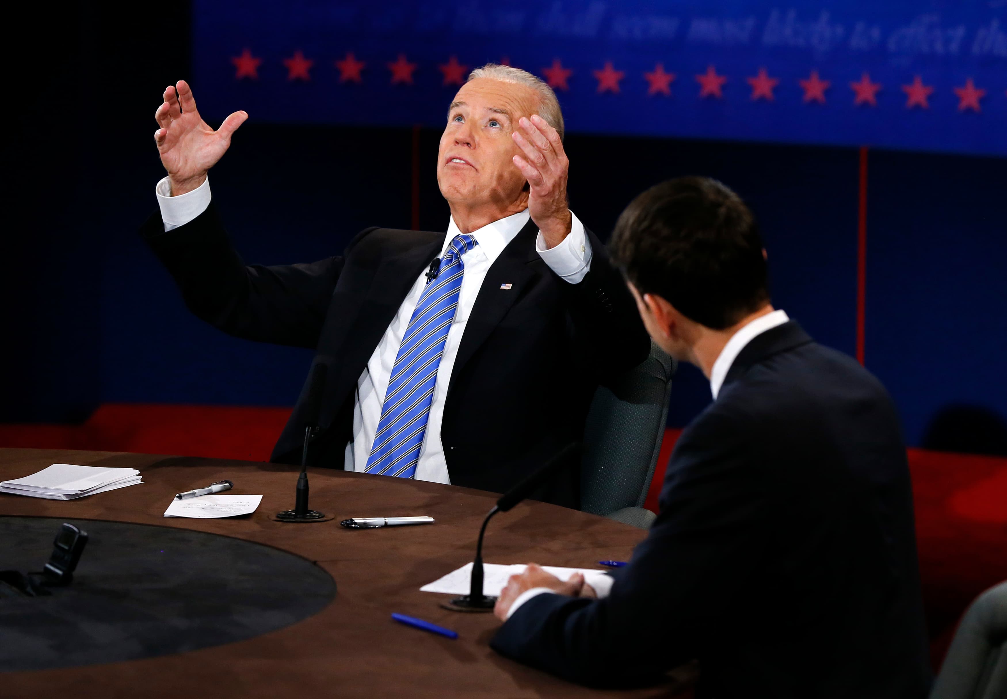 U.S. Vice President Joe Biden debates Republican vice presidential nominee Rep. Paul Ryan during the U.S. vice presidential debate in Danville, Ky., Oct. 11, 2012. (Photo by Rick Wilking/Reuters.)