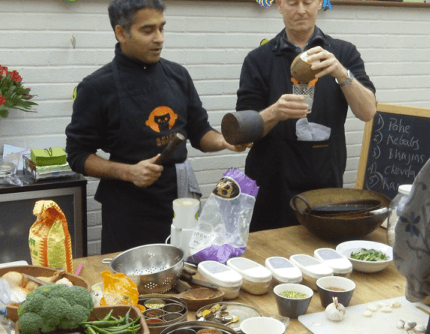 Nikita Gulhane teaches Indian cooking at a small school he runs out of his home. Gulhane’s parents moved to London from India in 1936, but he was born here.