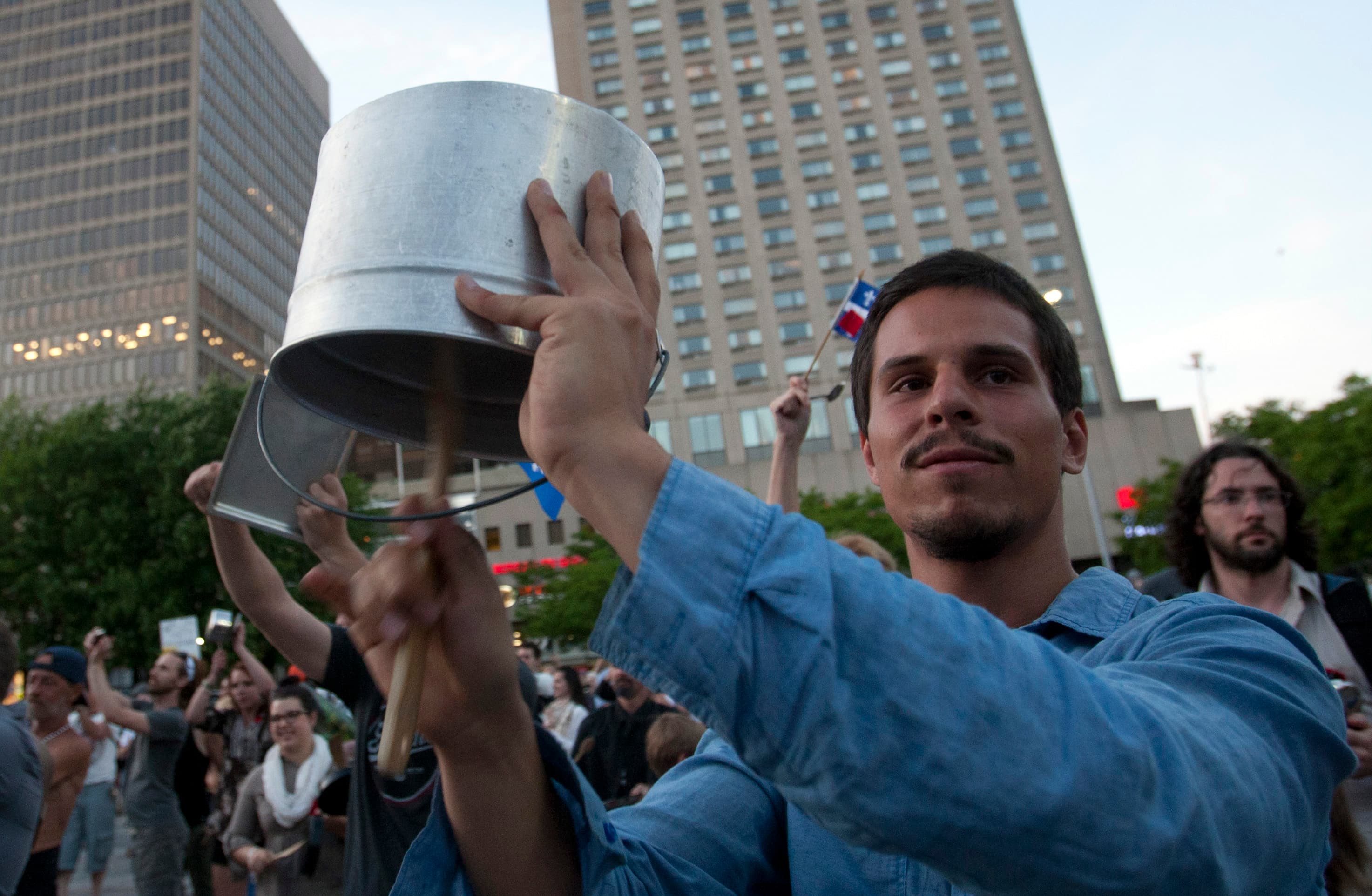 Thousands of students marched through Montreal’s commercial district recently, chanting, pounding on pots and pans.