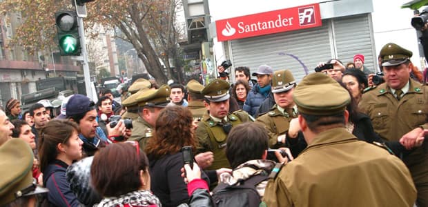 Anti-Pinochet rally and police (Photo: Alex Gallafent)