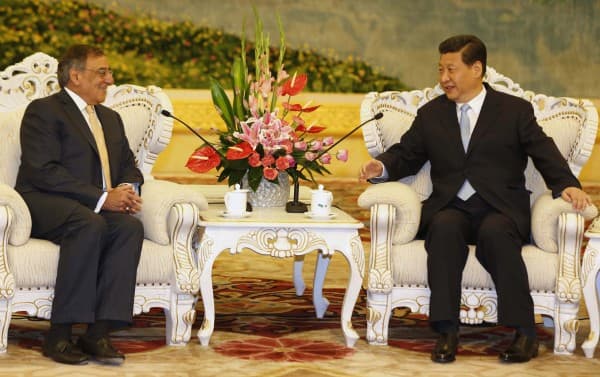 U.S. Secretary of Defense Leon Panetta (L) sits with China’s Vice President Xi Jinping at the Great Hall of the People in Beijing, September 19, 2012. Panetta is on the second official stop of a three-nation tour to Japan, China and New Zealand. REUTERS/Larry Downing (CHINA – Tags: POLITICS MILITARY)