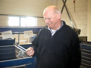 OrthoMetals Co-Founder Ruud Verberne holds a metal knee implant that will eventually be recycled for industrial use. (Photo by Clark Boyd.)