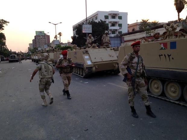 Armored personnel carriers in Cairo on Wednesday. (Photo: Jeremy Bowen/BBC/Twitpic)