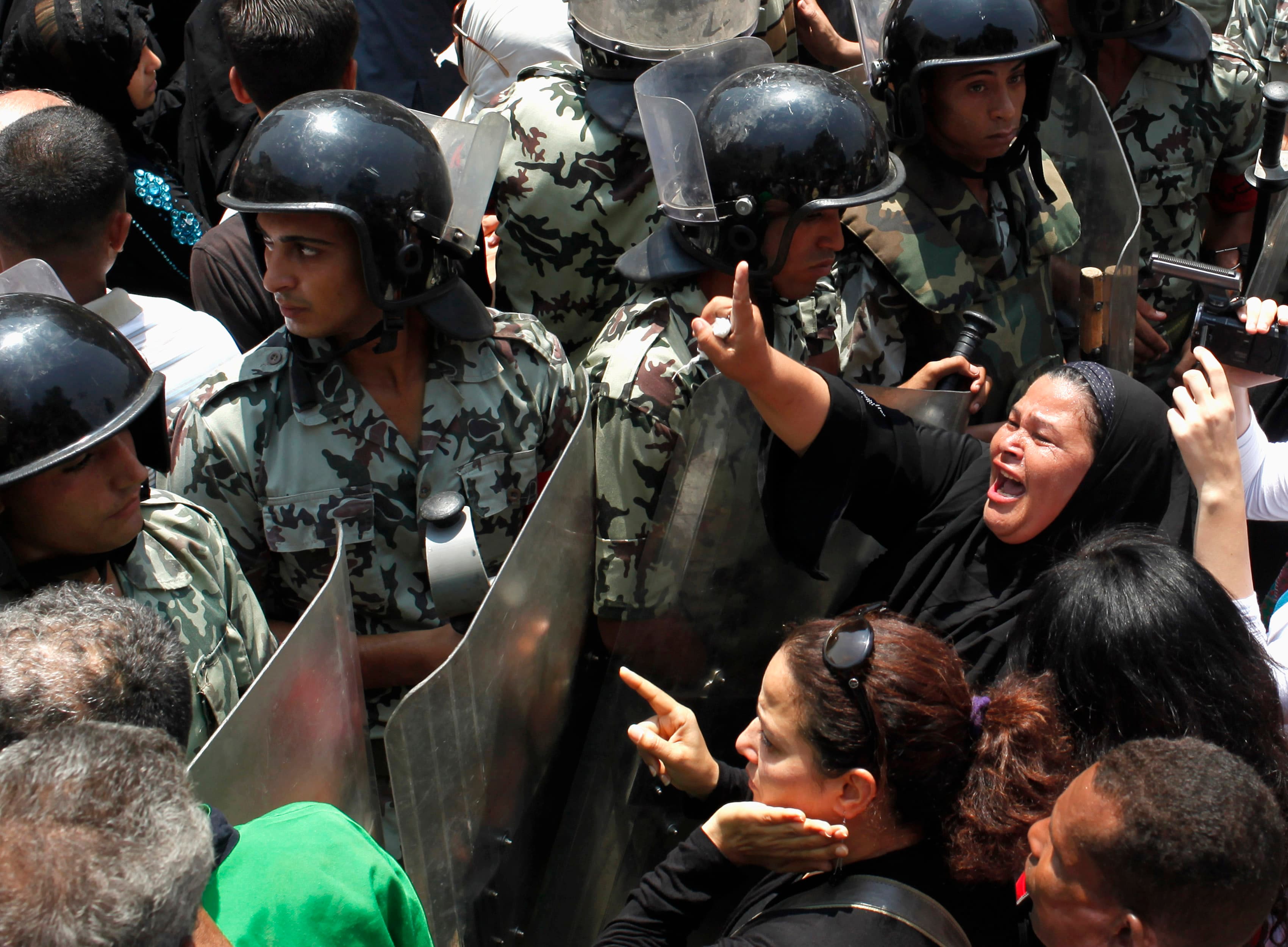 Relatives cry during a funeral in Cario for soldiers killed during an attack at a checkpoint along the Sinai border with Israel by unknown gunmen. (Photo by Asmaa Waguih/Reuters.)