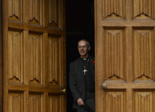 The Bishop of Durham, and the newly appointed Archbishop of Canterbury, Justin Welby, leaves after a news conference at Lambeth Palace in London November 9, 2012. Britain named a former oil executive as the new Archbishop of Canterbury and leader of the world’s 80 million Anglicans on Friday as the church struggles to overcome a painful rift over the issues of female bishops and same-sex marriage. REUTERS/Dylan Martinez (BRITAIN – Tags: POLITICS RELIGION)