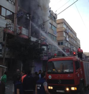 Fire dept fighting fire in Gaza media tower (Photo: Paul Danahar/BBC/Twitpic)