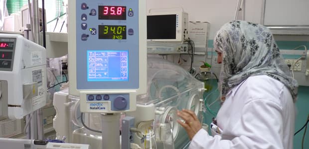 The intensive care unit for infants at Al-Shifa Hospital in Gaza City has been relying on power from diesel generators for up to 18 hours each day for weeks. There is no backup system. (Photo by Hamada Abu Qammar.)