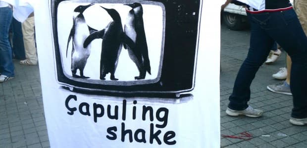 Turks now have been using the English -ing form, "chapulling". It means "a resistance to force, or to demand ones rights." Some protesters wear t-shirts with "chapuller", or the Turkish form "Chapulcu" , scribbled across them. Others labeled their tents at Gezi Park things like, "No. 1 chapul street". With this word it seems like a wave of creativity and humor was unleashed amongst the protesters.