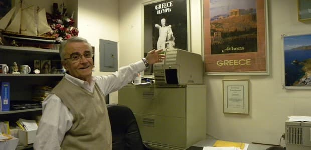 Takis Vassos owns a travel agency in Queens, N.Y. He says he tries to encourage people to visit Greece — to help the country’s economy. (Photo by Ewa Kern-Jedrychowska.)