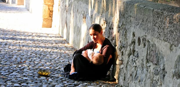 A woman in Kos, Greece, appeals for donations from passers-by. Homelessness and extreme poverty have increased as Greece’s economy has wavered. (Photo by Henrik Berger Jorgensen.)