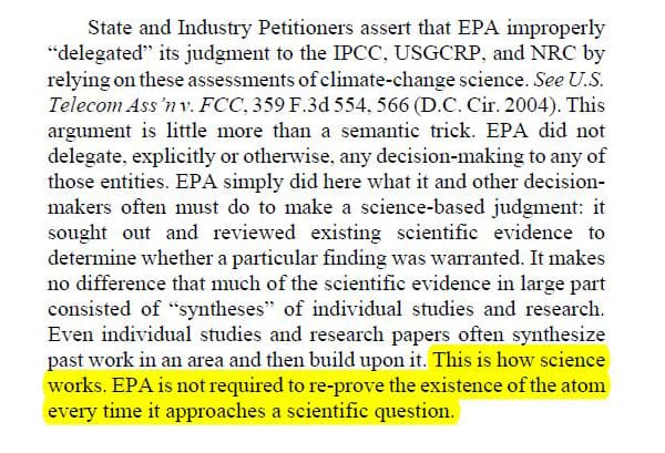 “This is how science works. EPA is not required to re-prove the existence of the atom every time it approaches a scientific question.”
