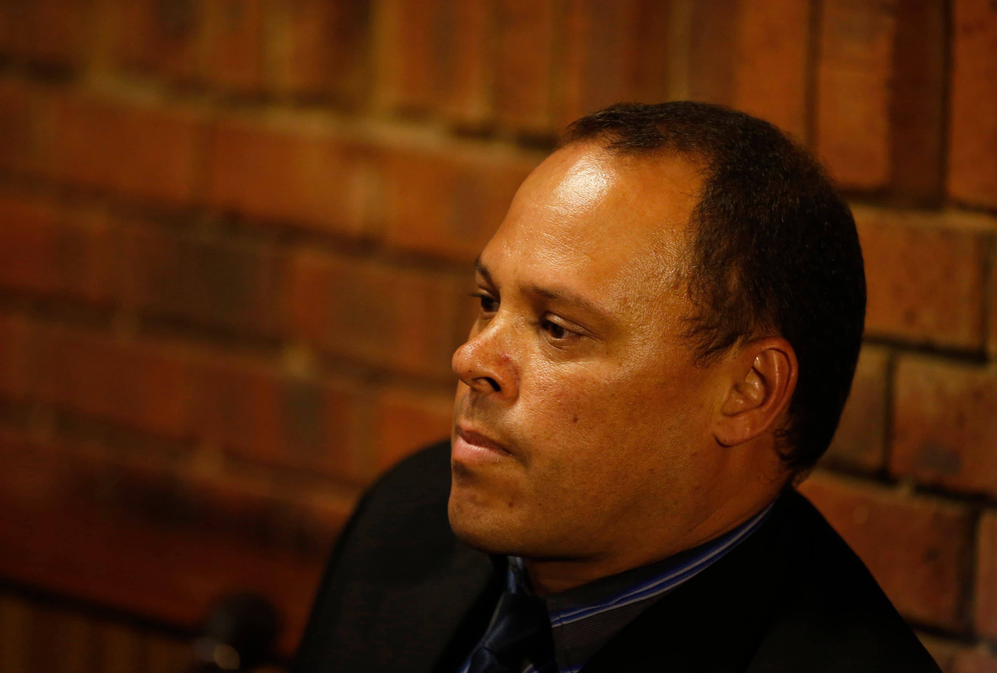 Investigating officer Hilton Botha, the lead detective in the Oscar Pistorius murder case, sits in court during a break in court proceedings at the Pretoria Magistrates court, February 21, 2013. “Blade Runner” Oscar Pistorius, a double amputee who became one of the biggest names in world athletics, was applying for bail after being charged in court with shooting dead his girlfriend, 30-year-old model Reeva Steenkamp, in his Pretoria house. Botha is himself facing attempted murder charges for firing on a minibus full of passengers, South African police said on Thursday. Botha, who took the stand against Pistorius at the Paralympic and Olympic track star’s bail hearing earlier this week, is due to appear in court in May over the 2011 shooting incident, police spokesman Brigadier Neville Malila said. REUTERS/Mike Hutchings (SOUTH AFRICA – Tags: CRIME LAW SPORT TPX IMAGES OF THE DAY) – RTR3E2C0