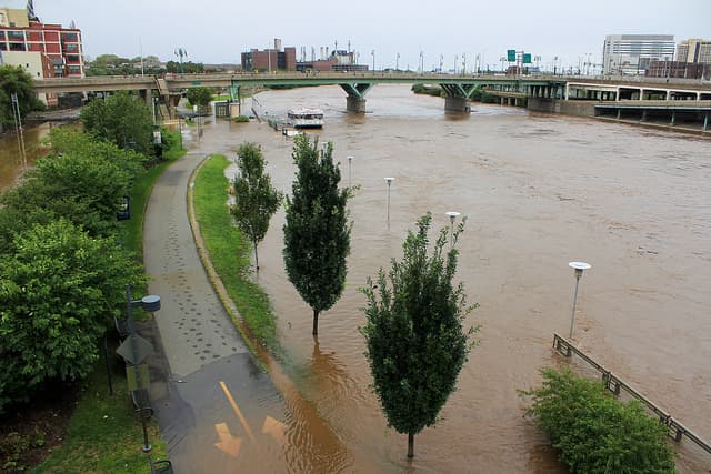 The Schuylkill River flooded onto paths nearby after Hurricane Irene passed through Philadelphia. (Flickr user riekhavoc)