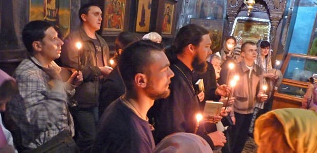 Pilgrims pray at the St. George’s monastery in Israel. The government is trying to encourage more tourism by Christians. (Photo by Matthew Bell.)