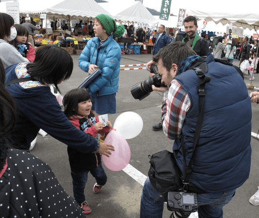At a recent town festival in Yamamoto-cho in Miyagi Prefecture, there were about a dozen or so photographers on hand, shuffling locals to an impromptu photo studio.