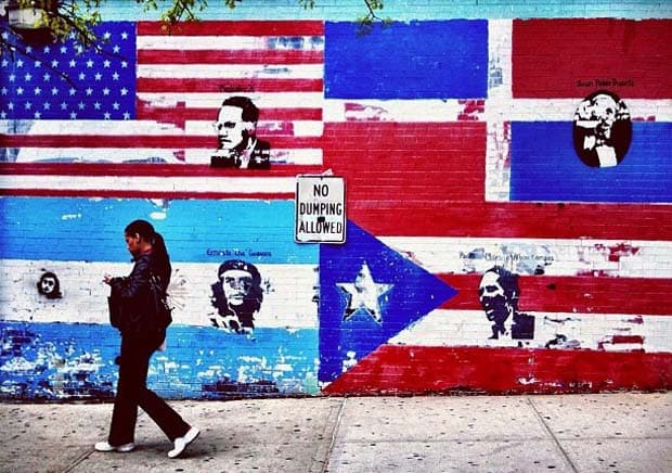 A mural showing Malcolm X (USA), Che Guevara (Argentina), Pedro Albizu Campos (Puerto Rico) and Juan Pablo Duarte (Dominican Republic) painted on a wall in the Washington Heights neighborhood in New York City. (Photo: Zadi Diaz/Flickr)