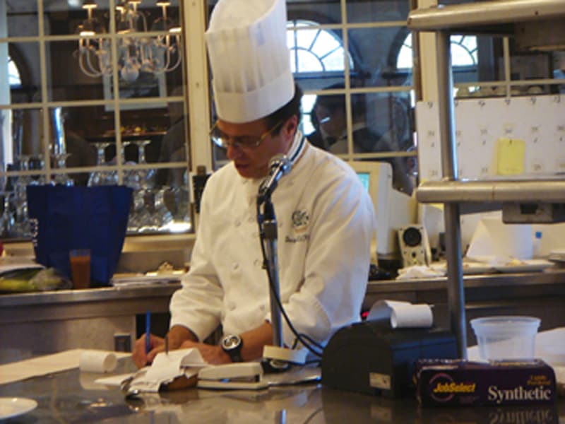 Chef Dwayne LiPuma calls out food orders to his students at the Culinary Institute of America in New York. (Photo by Jessica Ilyse Kurn.)