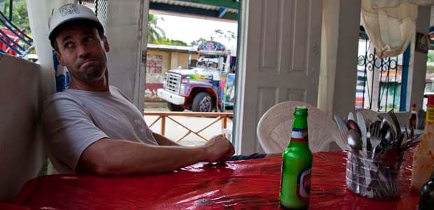 Reporter Zachary Slobig traveled the Pan-American Highway. He’s pictured here resting in Puerto Lindo, Panama. (Photo by Sachi Cunningham.)