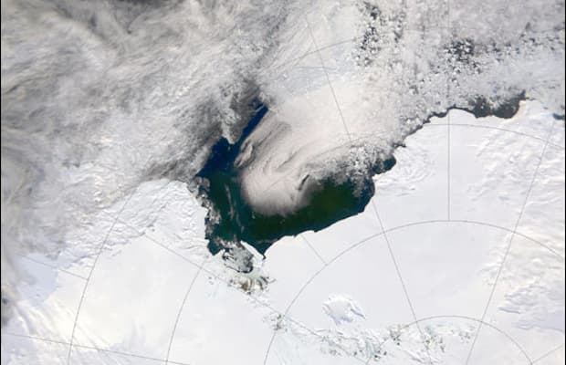 A rare, clear view of the Ross Sea at the edge of the Ross Ice Shelf, Antarctica. (Photo: SeaWiFS Project, NASA/Goddard Space Flight Center)