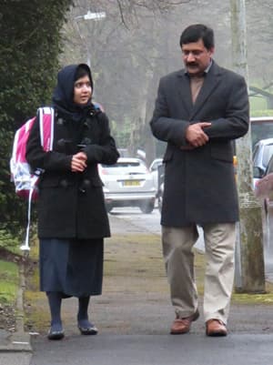 Handout photograph of Malala Yousafzai walking with her father Ziauddin as she attends Edgbaston High School for girls in Edgbaston. (Photo: REUTERS/Edelman/Handout)