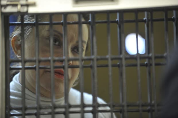 Elba Esther Gordillo, leader of Mexico’s teacher’s union, listens as Mexican authorities complete documentation after her arrest in Mexico City February 27, 2013. The arrest of Mexico’s best-known trade union leader on fraud charges has thrown down the gauntlet to powerful interests standing between President Enrique Pena Nieto and his plans to shake up Latin America’s second-biggest economy. REUTERS/Federal Judicial Council of Mexico/Handout (MEXICO – Tags: POLITICS CRIME LAW EDUCATION TPX IMAGES OF THE DAY)