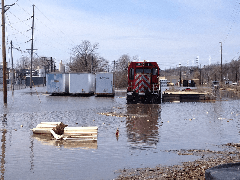 Heavy rains sent the Illinois River out of its banks in LaSalle, Ill., this spring. (Photo by Pam Broviak via Flickr, cc-by-sa-nc.)