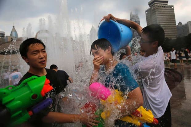 Children play in a fountain in Shanghai, China, as temperatures soar during a heatwave (Photo: Reuters: Carlos Barria)