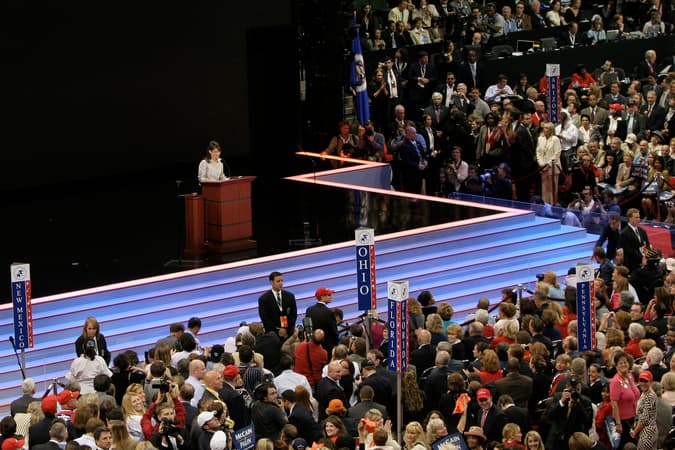 Sarah Palin speaks at the 2008 Republican National Convention. There’s talk that no single candidate could have enough delegates coming into the convention to win the nomination. (Photo by twinkletoez via Wikimedia Commons.)