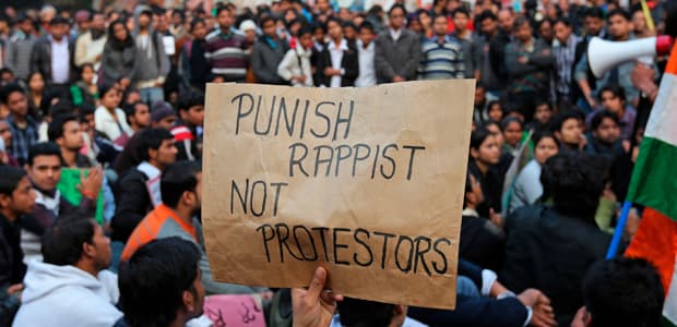 A demonstrator holds a placard during a protest in New Delhi. (Photo: Adnan Abidi/REUTERS)