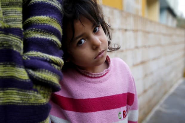 A Syrian refugee girl stands with her mother outside their friend’s house at the Syrian-Turkish border town of Ceylanpinar, Sanliurfa province, December 6, 2012. REUTERS/Laszlo Balogh (TURKEY – Tags: CIVIL UNREST MILITARY CONFLICT POLITICS SOCIETY IMMIGRATION)