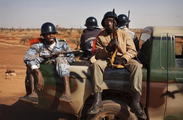 Malian soldiers heading to Gao in a pickup truck arrive in the recently liberated town of Douentza January 30, 2013. (Photo: REUTERS/Joe Penney)