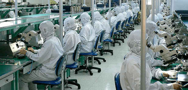 Chinese employees work in a manufacturing plant in China. (Photo by Flickr user jurvetson)