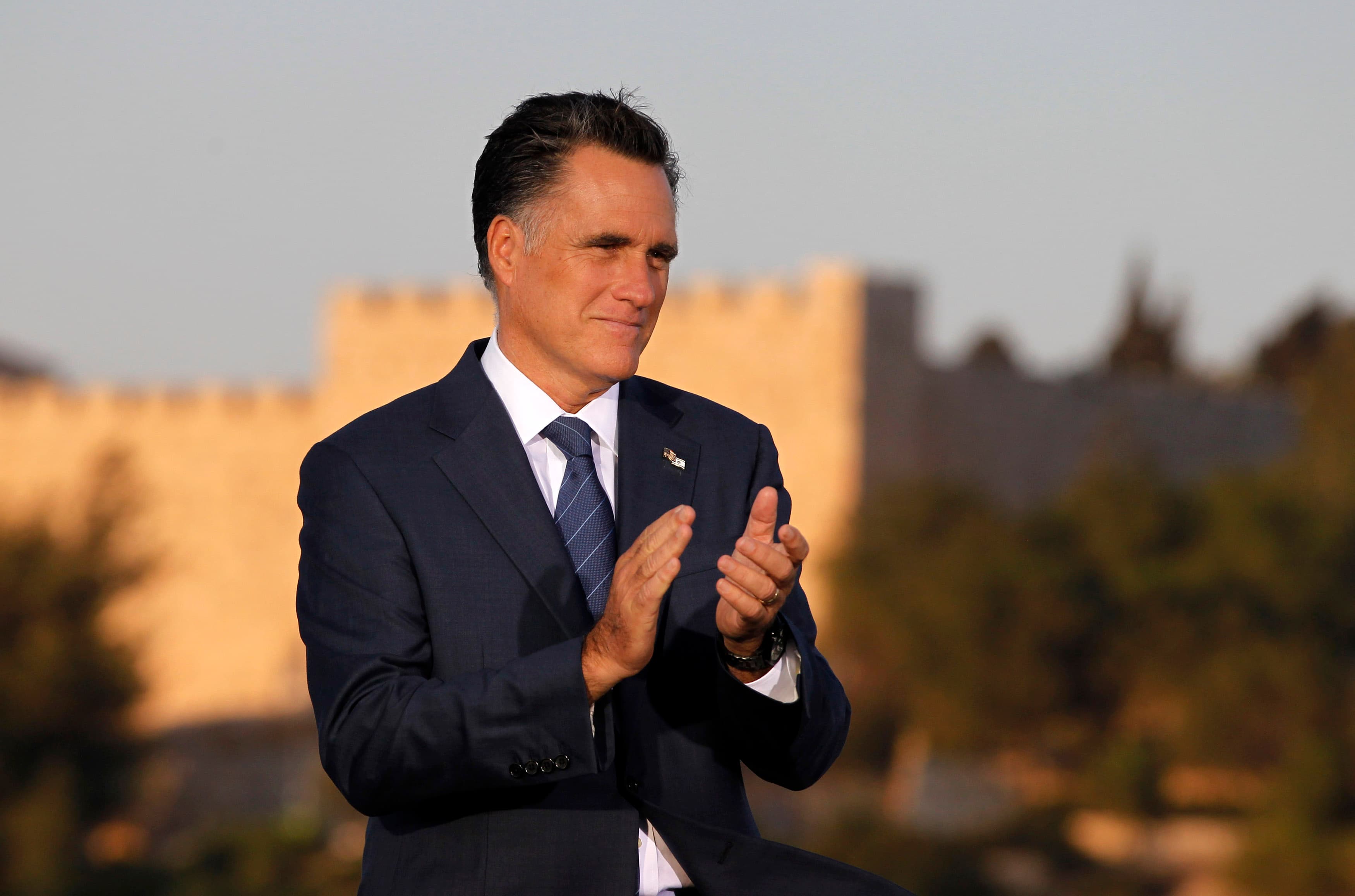 U.S. Republican Presidential candidate Mitt Romney is pictured before delivering foreign policy remarks at Mishkenot Sha’ananim in Jerusalem, July 29, 2012. (Photo by Jason Reed/Reuters.)