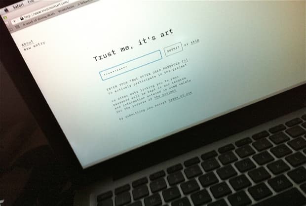 In other words, submitting a real password to Trust Me It’s Art is offering hackers another tool in their arsenal for future raids.
