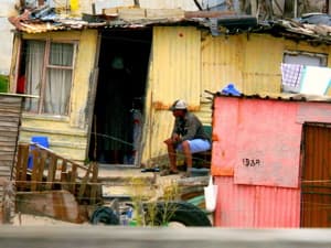 But for every poor white, there are maybe a thousand poor blacks. In some areas, like the Eastern Cape, almost half the population is unemployed. And most of those with jobs earn a pittance. The gap between rich and poor has not closed with apartheid, it has whitened.