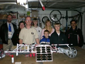 Brian Turner and the Space Pirates with their solar-powered climber. (Image: Derek John, Studio 360)