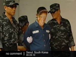 A recent rally in Seoul, North Korean defectors held a mock execution of the North Korean leader, Kim Jong-Il. A man in a grey jumpsuit, wearing a paper Kim Jong-Il mask, was bound loosely in rope.