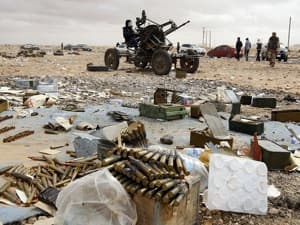 A rebel mans an anti-aircraft gun in Ras Lanuf March 8, 2011. (Image by Flickr user شبكة برق | B.R.Q (cc:by-sa))
