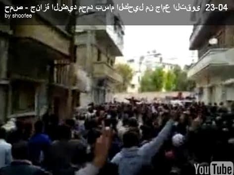Screen shot from video showing protests in Syria via YouTube: http://www.youtube.com/watch?v=WRk_ynG0hpg