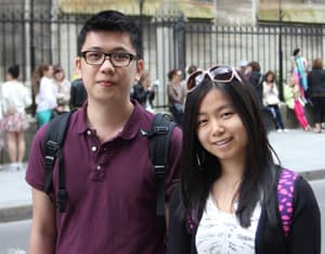 Chinese tourist Michelle Oyang and her friend Damon Ji outside Notre Dame cathedral in Paris. (Photo: Christopher Werth)