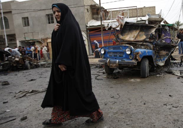 A woman walks near the site of the car bomb attack in the Kamaliya district in Baghdad May 20, 2013.At least 20 people were killed by a series of car bombs in mainly Shi’ite districts of the Iraqi capital, Baghdad, on Monday and 11 others were killed by attacks in the southern city of Basra, police and medics said. REUTERS/Mohammed Ameen (IRAQ – Tags: CIVIL UNREST) – RTXZTOW
